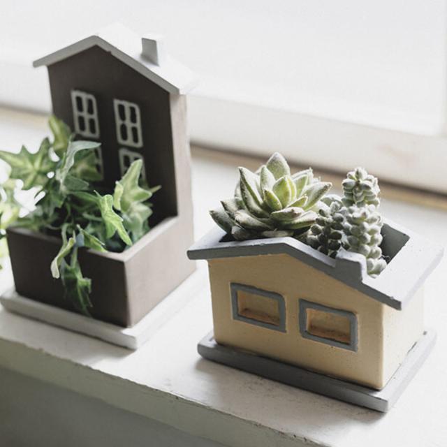 《 LH15465 ハウス セメントポット 園芸用品 庭 お庭 玄関 お部屋 室内 卓上 屋外 オシャレ インテリア雑貨 コンパクト かわいい 可愛い カワイイ グリーン 花 お花 コーデックス フラワー ガーデン雑貨 エクステリア ガーデン ガーデニング おうち時間 おすすめ オススメ 受け皿付き 》