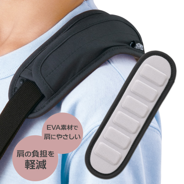 ショルダーストラップが食い込むのを防ぎ、肩の負担を軽減します。