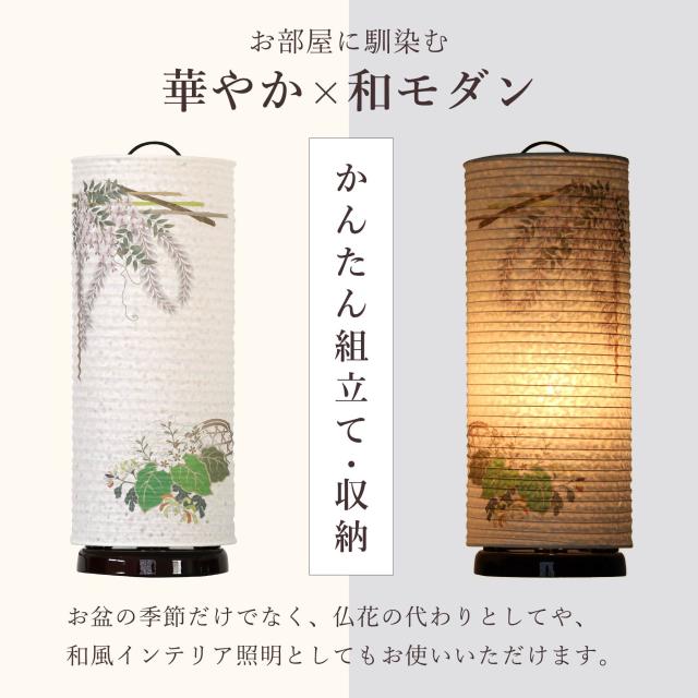 特価 在庫処分 残りわずか 盆提灯 初盆 新盆 モダン 仏具 単品 八女・移ろいの夏 シリーズ 下がり藤に白桔梗 インテリア灯 和 あんどん 行灯 ローソク灯 提灯 仏壇 贈り物 マグネット かんたん組立て