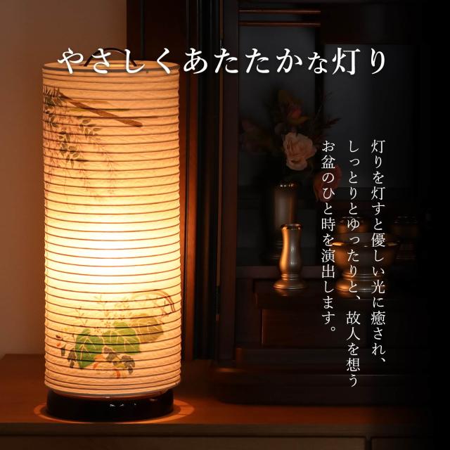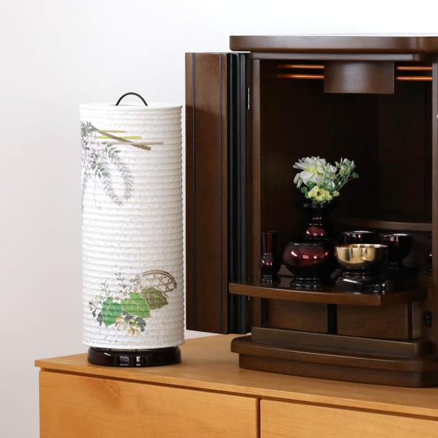 従来の大型仏壇だけでなく、床置き・上置き型のモダン仏壇にもフィットするサイズ感となっています。「豪華」「色鮮やか」ではない、和モダンな盆提灯をお探しの方におすすめです。