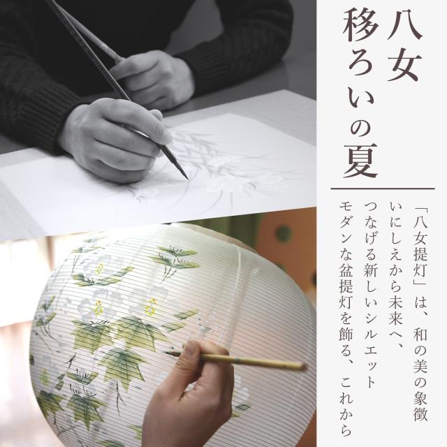 伝統的な「桶型提灯」のシルエット、和紙のやさしいし質感と暖色の灯し火。描かれる草木の繊細さは、古き良き、日本のお盆を演出してくれます。質素・上品な色使いは、和洋を問わず、お部屋のインテリアにすっとなじみ、落ち着いた空間を演出してくれます。
