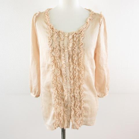 【中古】エマジェイムス EMMAJAMES シャツ ブラウス 七分袖 フリル ストライプ ベージュ 11R *T236 レディース
