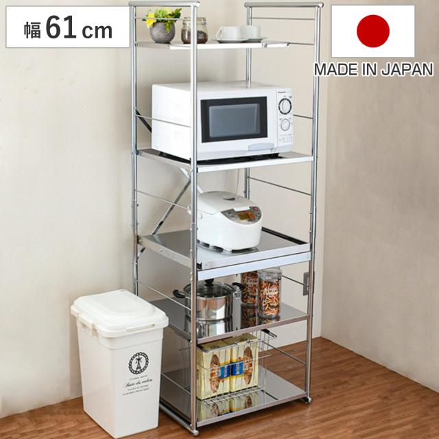 レンジ台 ステンレスレンジラック ハイ オープン ( 2口コンセント付き レンジラック レンジ上ラック キッチンラック 家電ラック 食器棚 キッチンワゴン キッチンストッカー オープンラック 収納 日本製 60幅 スライド )