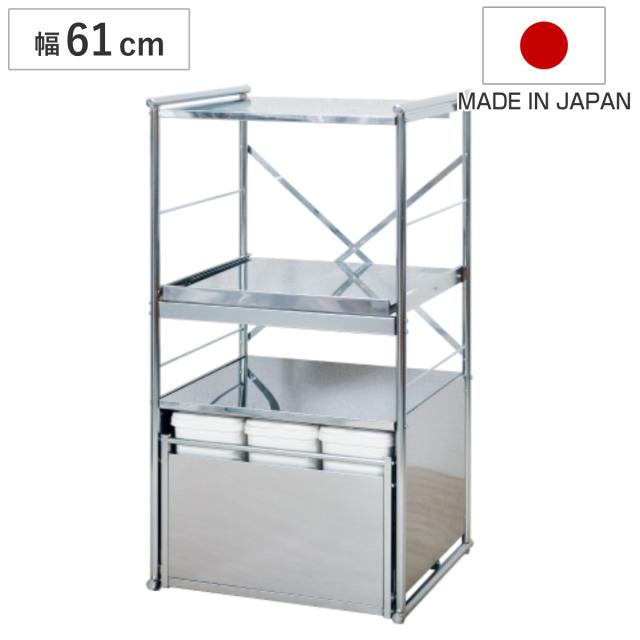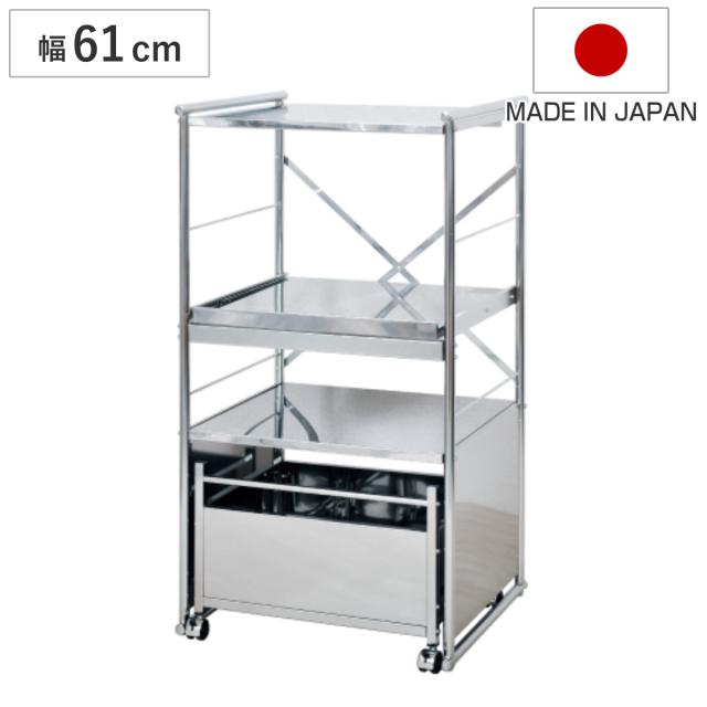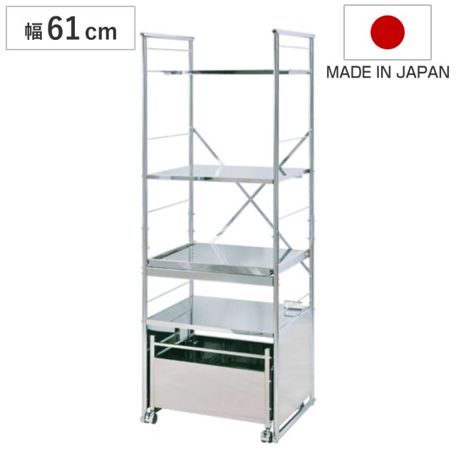 レンジ台 ステンレスレンジラック ハイ オープン ( 2口コンセント付き レンジラック レンジ上ラック キッチンラック 家電ラック 食器棚 キッチンワゴン キッチンストッカー オープンラック 収納 日本製 60幅 スライド )