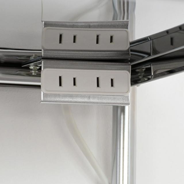 ラックには2口コンセント(計1500W)が付いているため、ラックの上で家電を使うことができます。