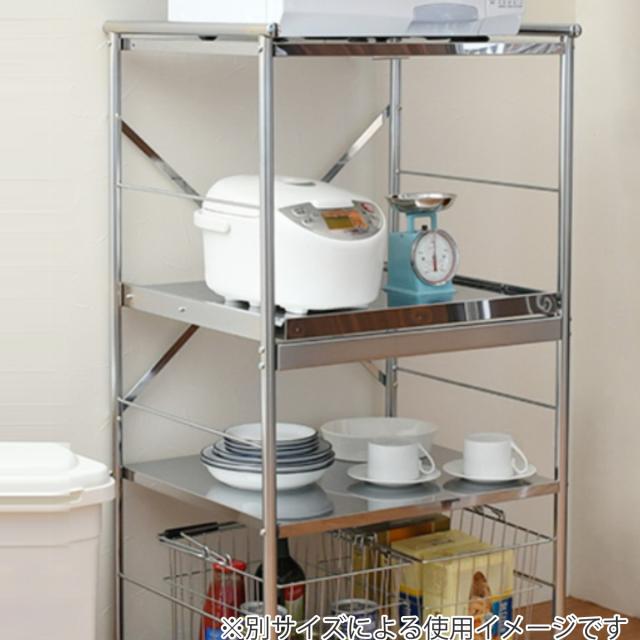 | 材質 | 本体、横パイプ:スチール(クロムメッキ) 棚板:ステンレス |