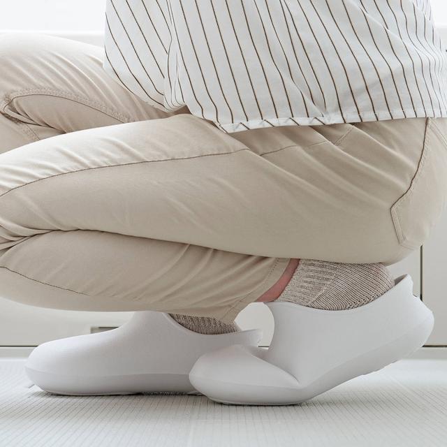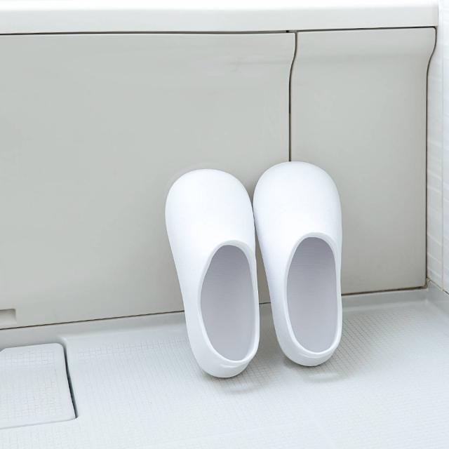 柔らかく履き心地の良いEVA樹脂製なので、座りながらのお掃除もしやすいです。底は滑りにくいクッション素材なので、安心です。