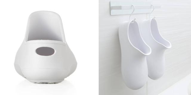 かかと部分にフック用の穴があるので、フックに掛けて干したり、収納することができます。
