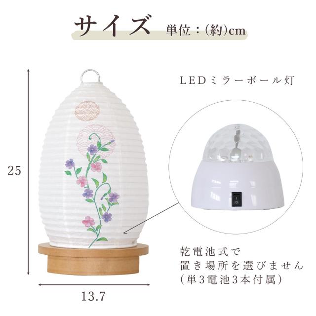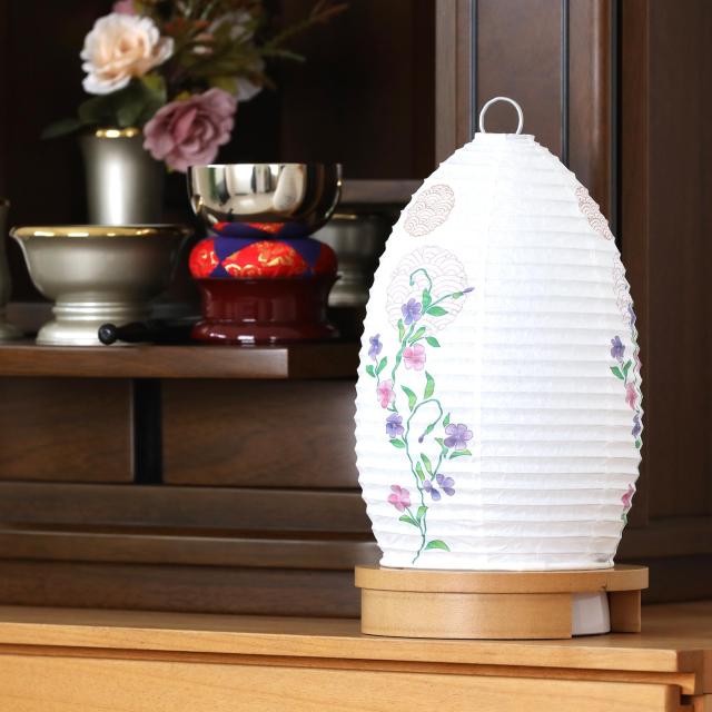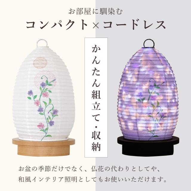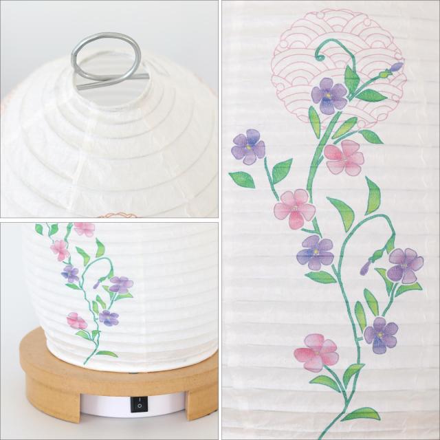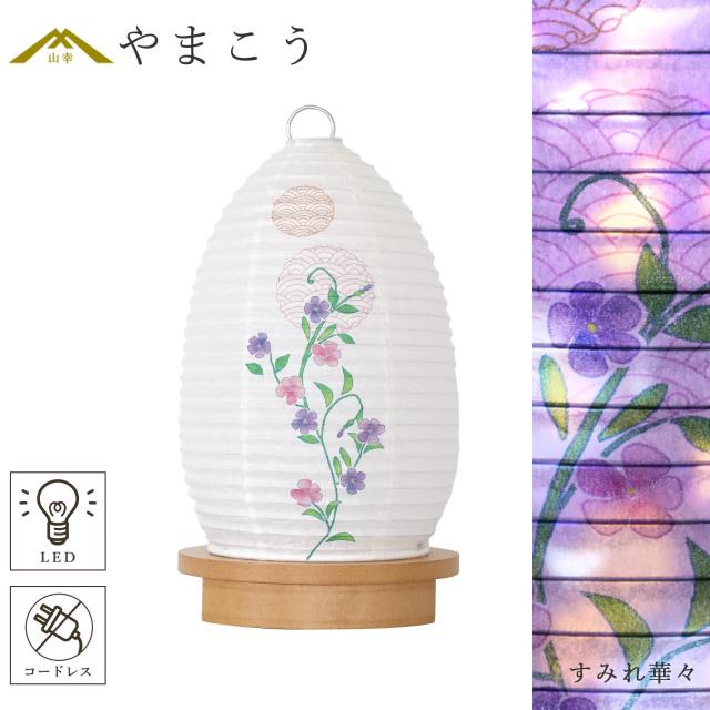 盆提灯 初盆 新盆 モダン 仏具 単品 夏あかり・岐阜シリーズ すみれ華々 やまこう オリジナル 美濃和紙 コードレス LED ミニ 和 提灯 仏壇 仏花 贈り物