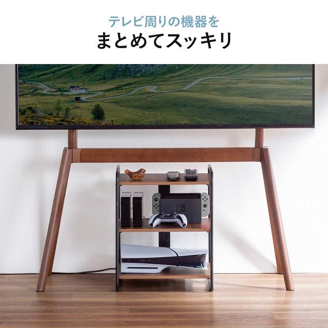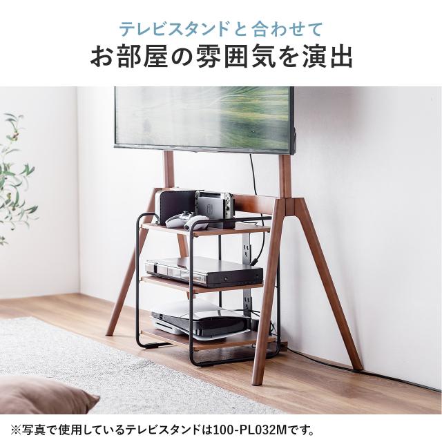 ●レコーダーやゲーム機、外付けハードディスクなどを置ける木製のシェルフです。●イーゼルタイプのスタンド、100-PL032Mの下の空間を有効活用できます。