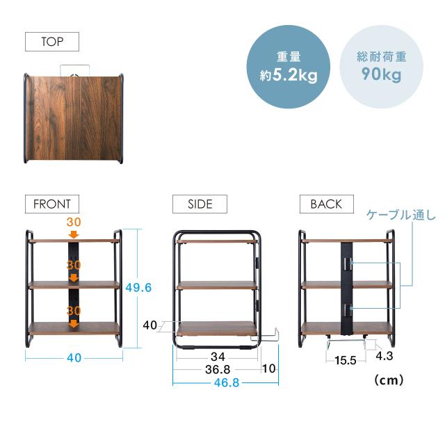 オーディオラック 木製 収納 3段 総耐荷重90kg ケーブル整理 AVラック ブラウン[100-PL033M]
