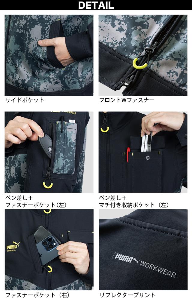 作業ウェアPUMA ワークジャケット 長袖 PW-3011A 単品 ストレッチ 反射 迷彩 カモフラ メンズ プーマワークウェア PUMA WORKWEAR 作業着 作業服 ユニワールド