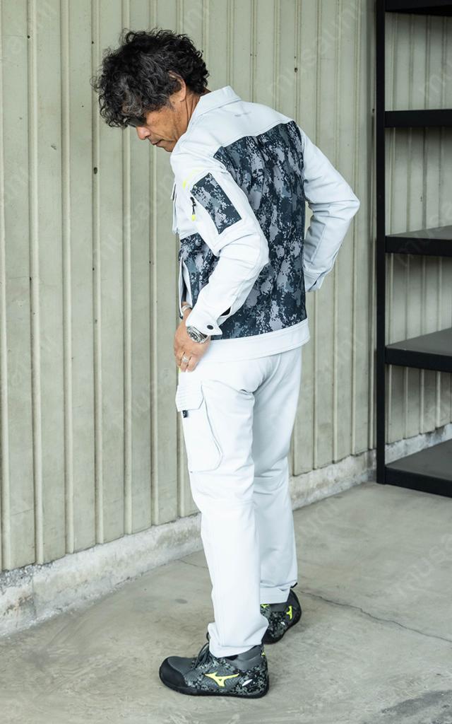 背面のリフレクタープリントが夜間作業でも