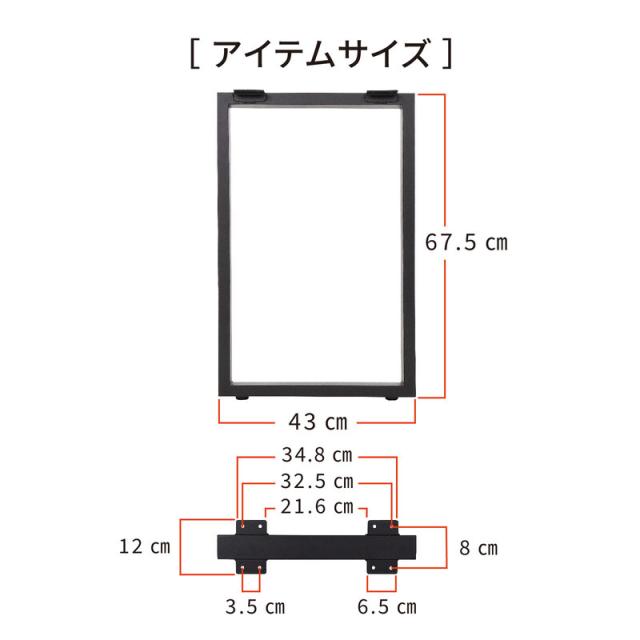 高さ67.5センチ×幅フレーム5センチ(金具部含み12センチ)×奥行43センチ |