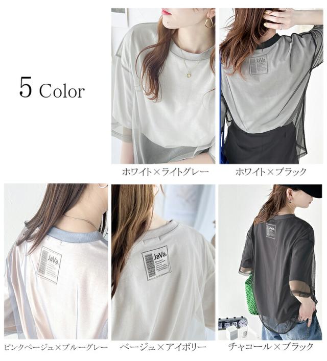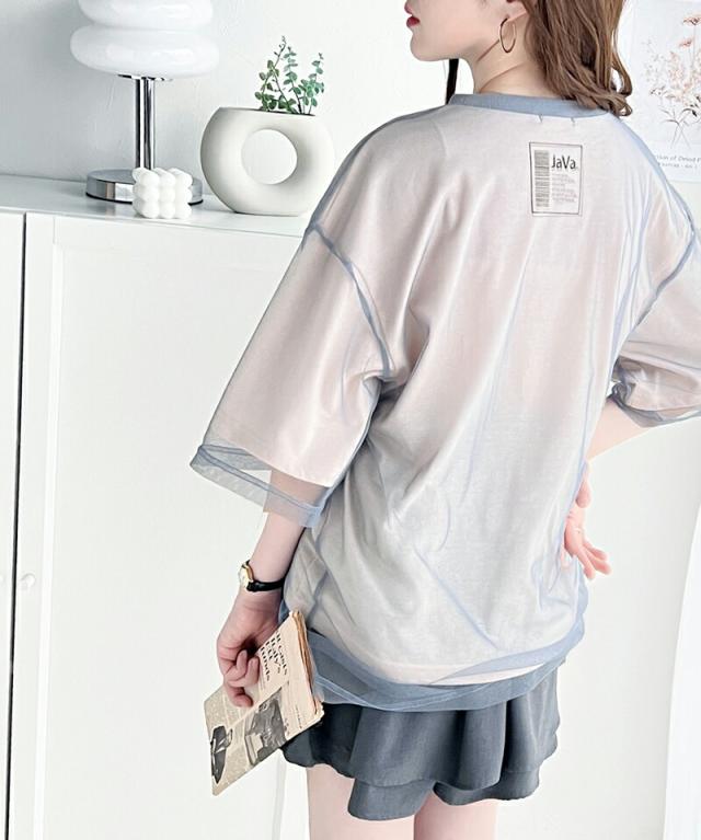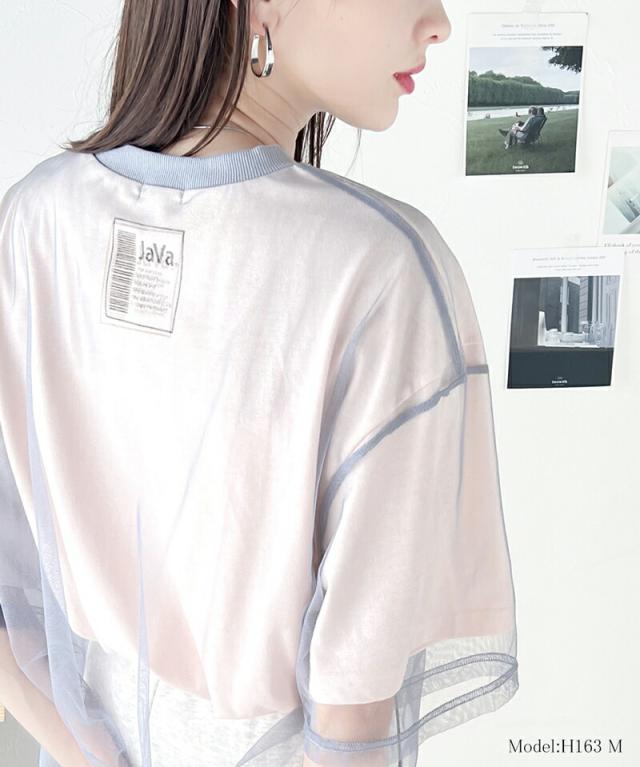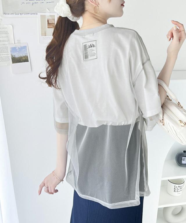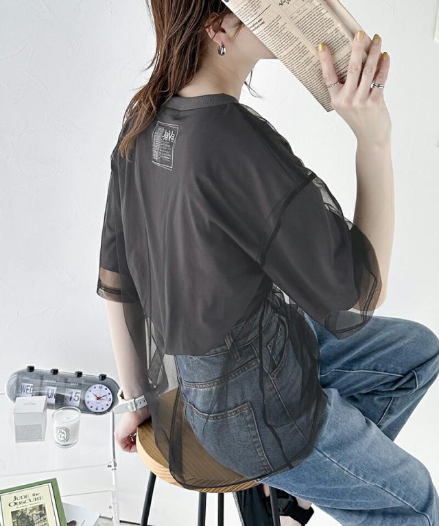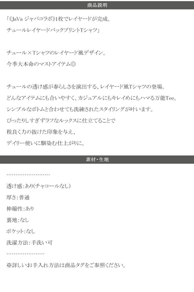 ★《JaVa ジャバコラボ》1枚でレイヤードが完成。チュールレイヤードバックプリントTシャツ★