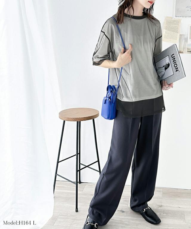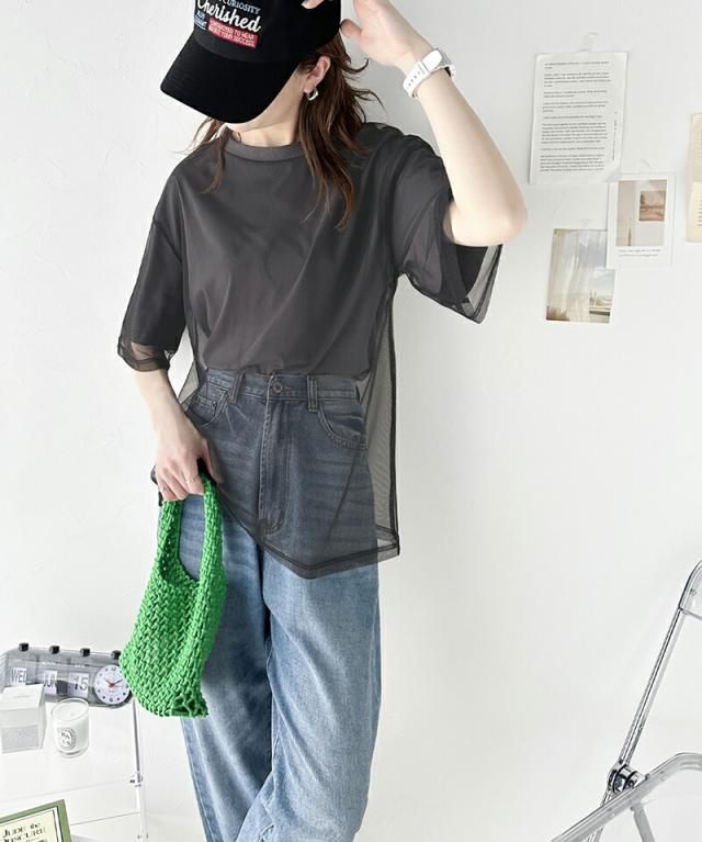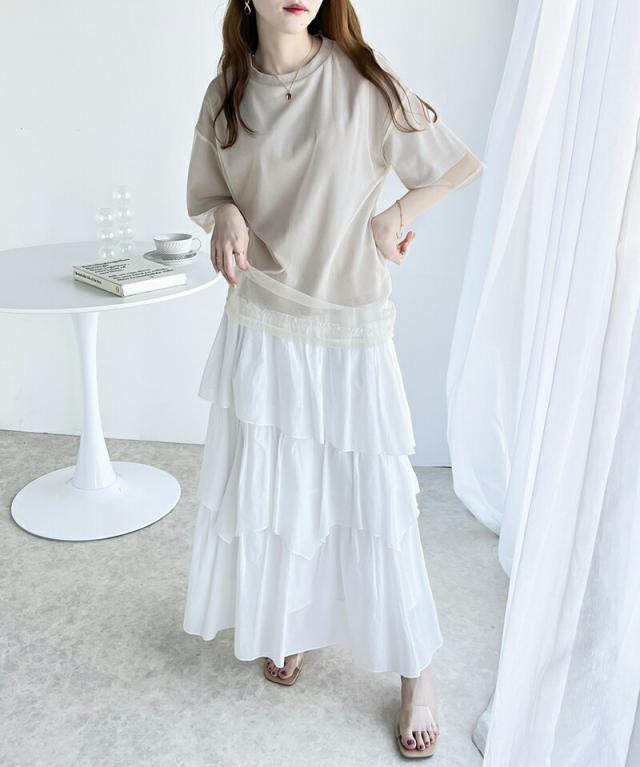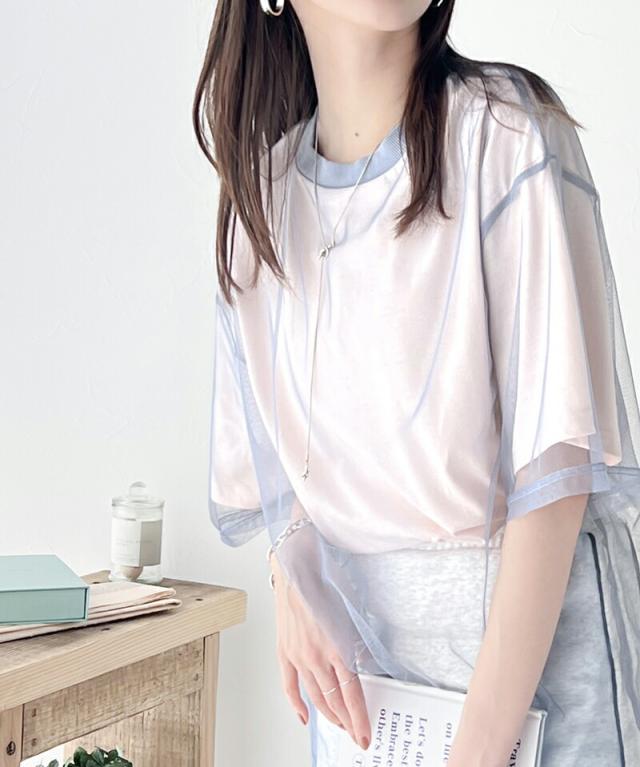 チュール×Tシャツのレイヤード風デザイン。