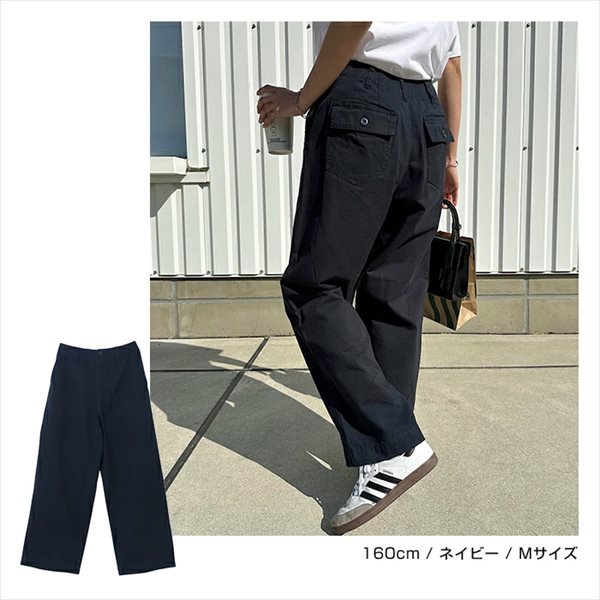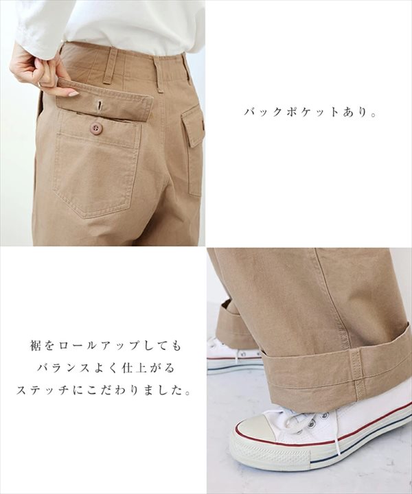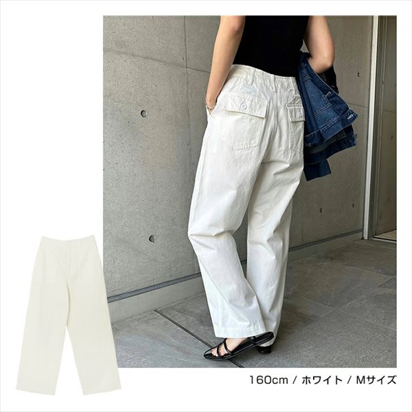 | 仕様 | どんなカジュアルコーデもこれ1本で抜け感のある着こなしにキマる! クタッと柔らかなコットン素材が心地よいハイウエスト・センタープレス・ベイカーパンツが新登場です。 センタープレスと裾に向かって細く仕上げたテーパード・シルエットが足元をキレイにまとめてくれる美ラインパンツ。 一般的なデニム生地と比べて、やや薄手で軽い着用感もポイントです。 ジャストサイズで着用すれば、キレイめカジュアルに。 ワンサイズあげて着用すれば、リラックスコーデに。 裾をロールアップして着用する際、一折りでバランス良く仕上がる、ステッチにもこだわりました。 お好みのスタイルに合わせて着まわせる、オールシーズン対応のおすすめボトムです! ※裏地:なし ※製品洗いをしている為、色によってサイズに多少のバラツキがございます。ご了承の上、お買い求めください。 |