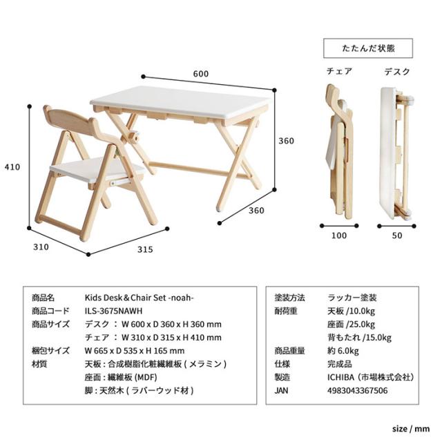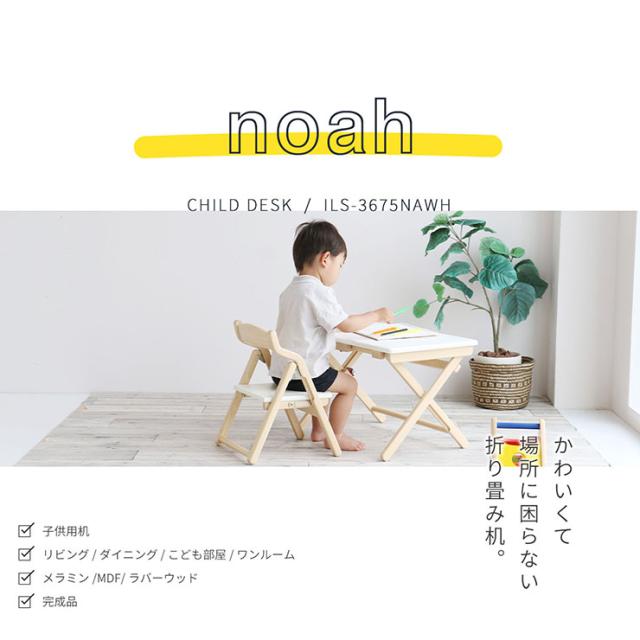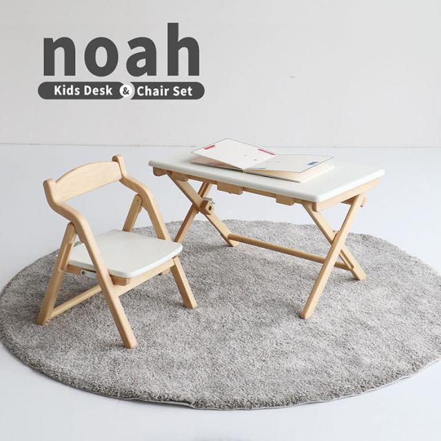 完成品 キッズデスク&チェア 2点セット noah デスク 机 椅子 キッズチェア キッズテーブル 子どもイス 折り畳み机 学習デスク 学習机 勉強机 作業台 木製 子供部屋 リビング キッズルーム 保育園 幼稚園 おしゃれ