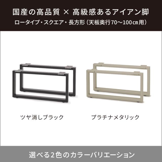 岐阜鉄の匠 【国産】 テーブル用アイアン脚 プラチナメタリック ロータイプ【カラバリ: ツヤ消しブラック / プラチナメタリック 】 鉄脚 スチール脚プ 長方形 天板奥行き70〜100センチ用 撥水加工 付属ネジ/アジャスター付