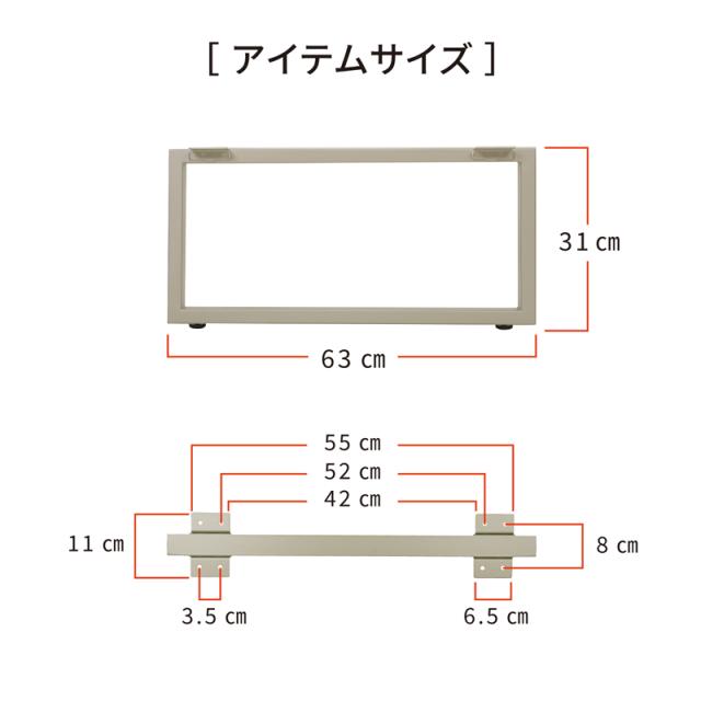 高さ31センチ(アジャスター込み)×幅フレーム4センチ(金具部含み11センチ)×奥行63センチ |
