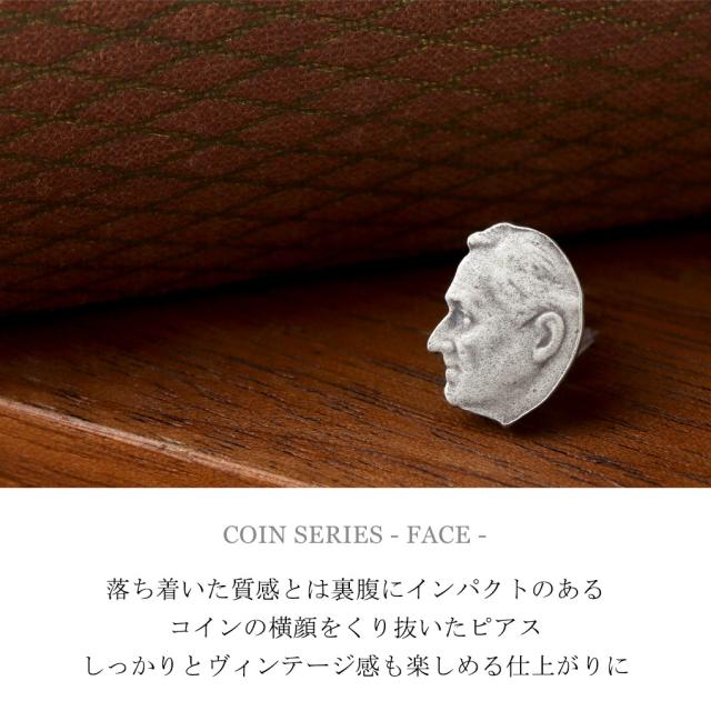 THEFT セフト フェイス モチーフ コイン ピアス 1P 片耳用 シルバー 顔 表情 硬貨 アレンジ ビンテージ ヴィンテージ アンティーク調 シルバーピアス
