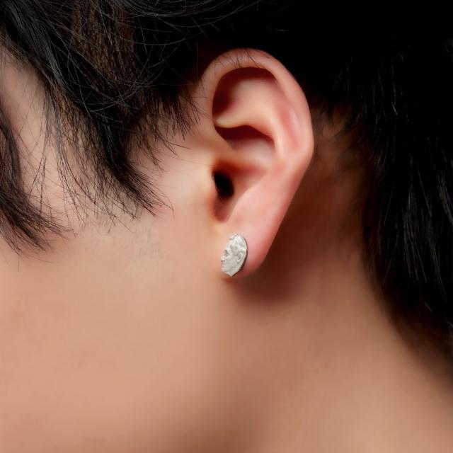 落ち着いた質感とは裏腹にインパクトのある、コインの横顔をくり抜いたピアス