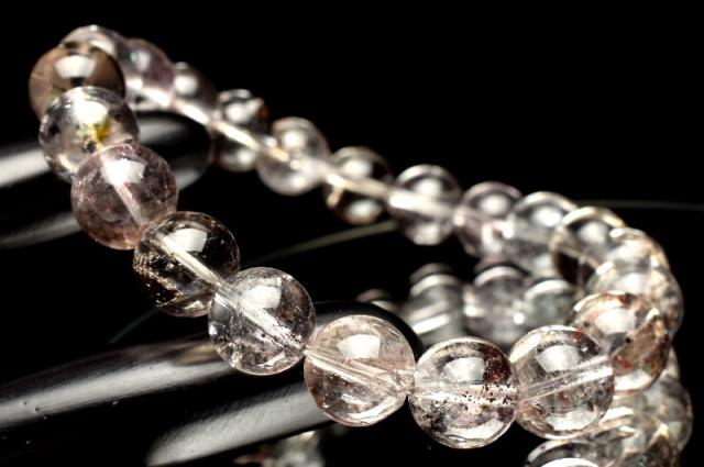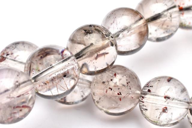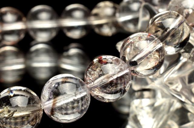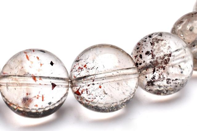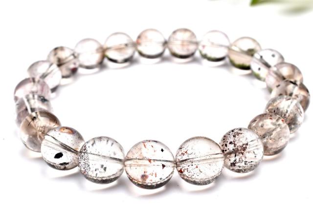 | 特徴・意味 | 透明な水晶に煌めきが内包されとても美しいブレスレットです。 水晶にレピドクロサイト(鱗鉄鉱)が内包された天然石です。 綺麗なアベンチュレッセンス効果が見られます。 (アベンチュレッセンス効果とは、結晶中に含まれた内包鉱物結晶が見せるキラキラとした輝きのことです) 赤く美しい物はファイアークォーツ、その他にもハーレクインクォーツ、ハーレクイン水晶など流通名を多数持った天然石です。 |