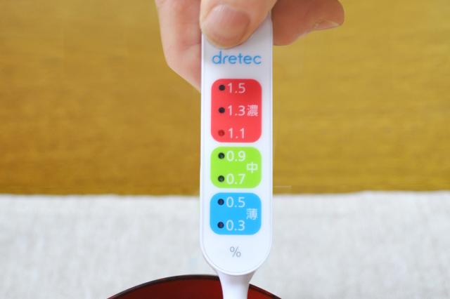 塩分計 健康塩分計 ドリテック ( dretec 塩分濃度計 塩分測定器 LEDライト 7段階 スティック型 健康グッズ 塩分濃度 簡単 高血圧 減塩 健康管理 ダイエット 塩分チェッカー )