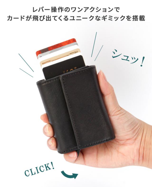 | キャシュレス時代にCACTAが提案する次世代型のコンパクトウォレット。 不正なカード情報の読み取り(スキミング)による被害から、あなたの大切なカードを守ってくれる特殊なカードプロテクターを内蔵しています。またレバー操作のワンアクションでカードが並んで出てくるクセになるギミックを搭載。お探しのカードを瞬時に取り出す事ができ、スムーズな決済を可能にしてくれる次世代型ウォレットです。 こちらの Newシリーズは、三つ折り内にもポケットを配置し、カードが13枚以上収納できる大容量モデルとなりました。L型ファスナー式のコインスペースを備え、ファスナーにはYKK社製を採用。ファスナー引き手は自在に動く形状になり、指先のフィット感や使い心地がUPしました。小銭入れとして使うだけでなく、ピルケースとしてでも、アクセサリーポーチ的につかうのも自由です。本体素材には“TUSCANY(トスカニー・レザー)”を採用。しっとりと馴染む柔らかな手触りで、深みのある落ち着いた色合いが魅力的。使い込むことで艶が増し、エイジングも楽しめる上質なレザーです。 イタリア植物タンニンなめし革協会の品質保証タグ付きで、植物性タンニンのみにより鞣された革であることを保証するものです。シリアルナンバーが一枚一枚印刷されており、唯一無二の愛着が湧くウォレットです。 |