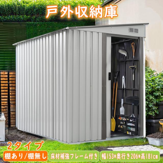 「クーポン配布中」屋外物置倉庫 戸外収納庫 大型物置き 収納庫 屋外物置 防さび ベランダ 防水/耐侯 幅153*奥行き206*高181cm 収納庫 ガーデン/庭/田畑/農場 頑丈 大容量 スチール 屋外収納 床なし ドア 引戸 庭 新作