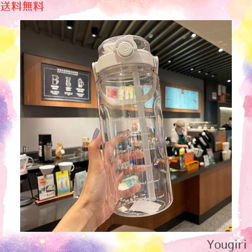 1500ml ボトル 水筒 大容量 ポータブルストロースポーツウォーターボトル 2WAY わら付き 水位目盛付き BPAフリー プラスチックウォータ