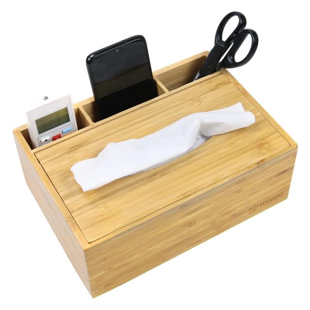 良木工房(YOSHIKI) 竹製 ティッシュケース ティッシュ リモコン 収納 リモコン収納ケース ティッシュボックス リモコンラック ペン立て 仕切