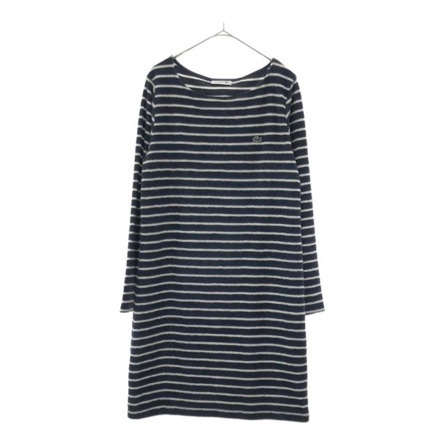 ラコステ ボーダー ロゴ刺繍 長袖 パイル地 ミニワンピース 38 ホワイト×ネイビー LACOSTE レディース