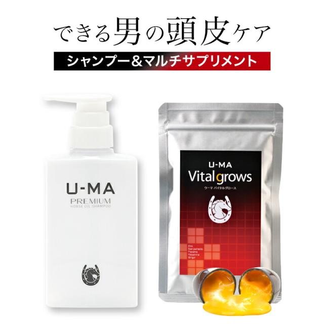 【U-MA Vitalgrows 1袋 & 薬用 ウーマシャンプープレミアム 1本 セット】サプリメント ノコギリヤシ 亜鉛 ノンシリコン シャンプー スカルプシャンプー