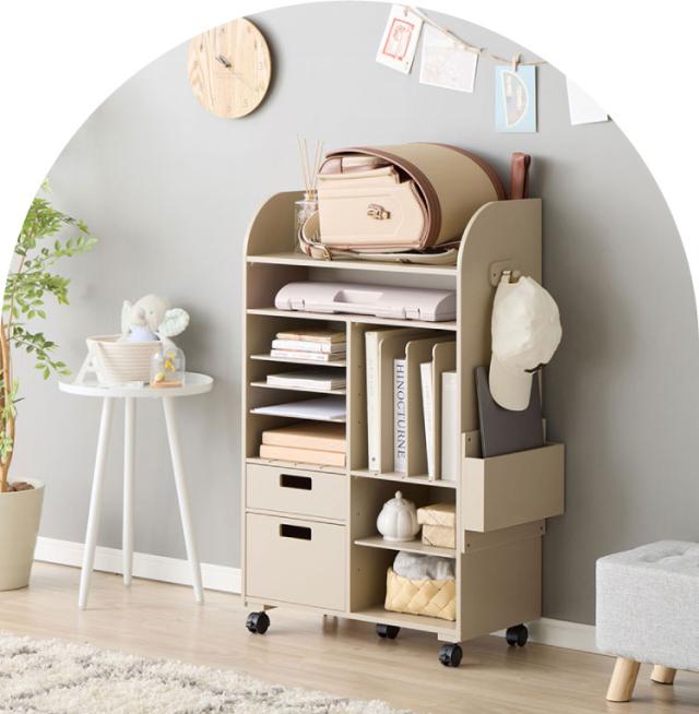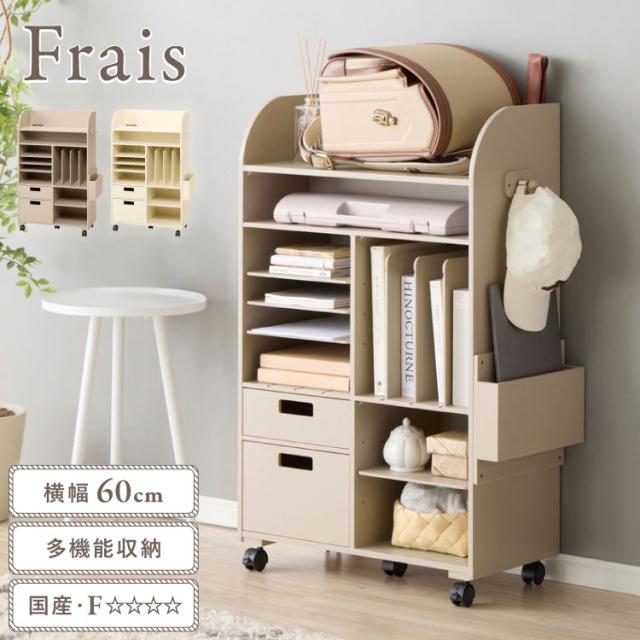 Frais ランドセルラック グレージュ オフホワイト ランドセル収納 リビング学習 リビング タブレット学習 モダン 多機能 未就学 小学生 キャスター付き 移動 コンパクト コンセント 便利 多機能(代引不可)【送料無料】