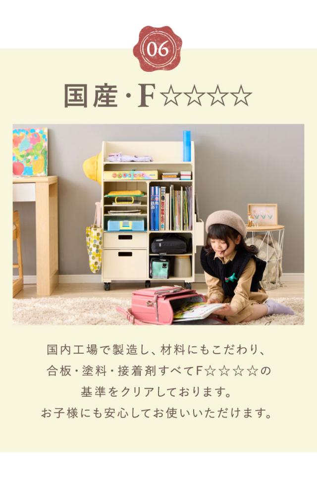 国内工場で製造し、材料にもこだわり、合板・塗料・接着剤すべてF☆☆☆☆の基準をクリアしております。お子様にも安心してお使いいただけます。