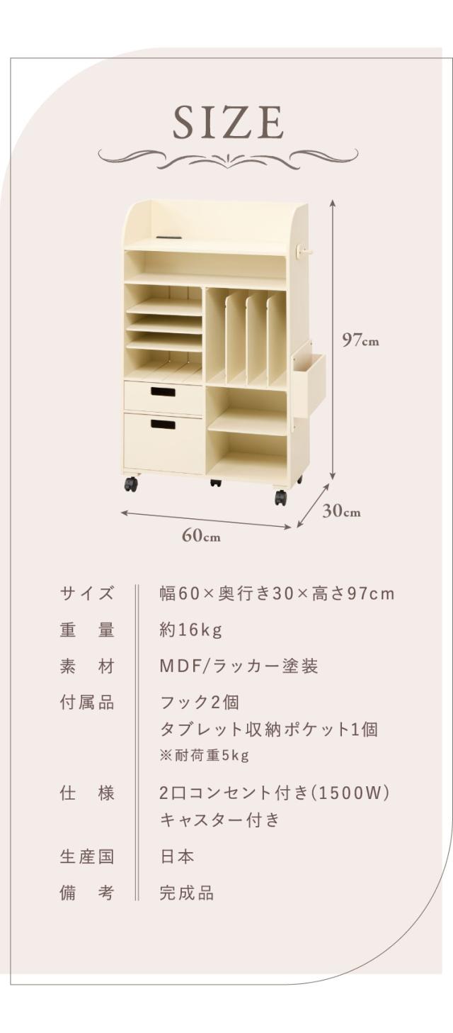 ※キャスター、タブレット、フックは、お客様取り付けとなります。