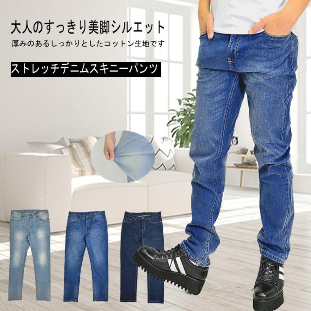 【閉店セール】ストレッチ スキニーデニムパンツ ストレッチ ジーンズ キレイめ メンズ テーパード メンズ ユニセックス 8002-9117a DENIM パンツ ストレッチ メンズ スリム 細身 美脚 ブルー ブリーチ ネイビー インディゴ ワンウォッシュ M L XL パンツ ネコポス対応