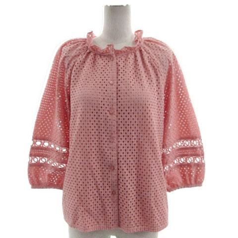 【中古】バナナリパブリック BANANA REPUBLIC シャツ フリルネック 七分袖 バルーンスリーブ 総レース ピンク系 L