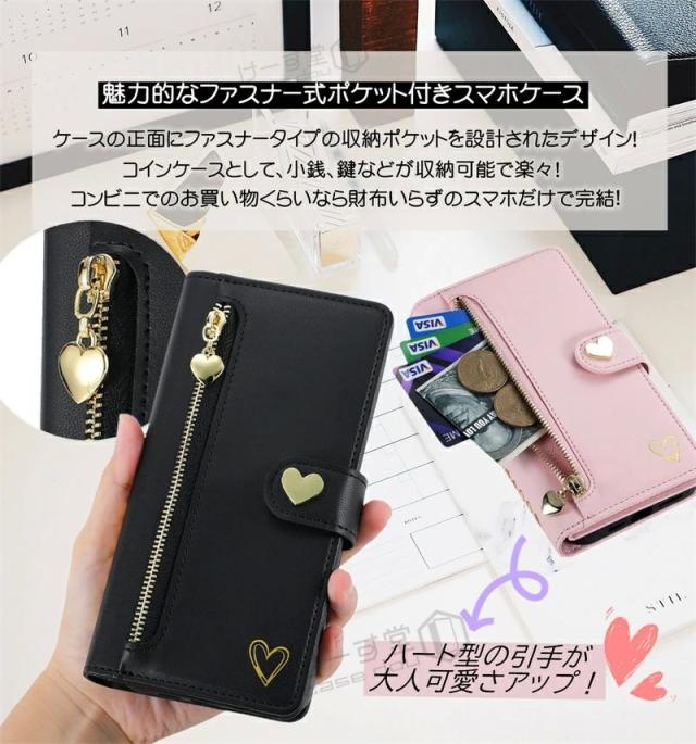 キュートなハートモチーフデザインの中にも高機能さを併せ持つ 手帳型ケース です。