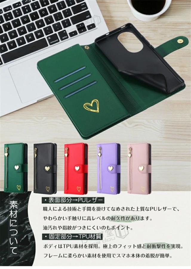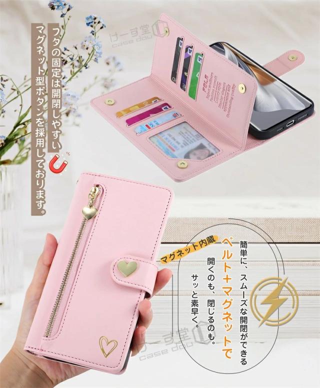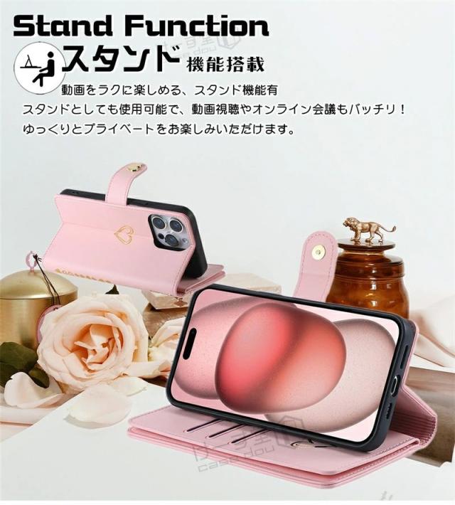 キュートなハートモチーフデザインの中にも高機能さを併せ持つ 手帳型ケース です。