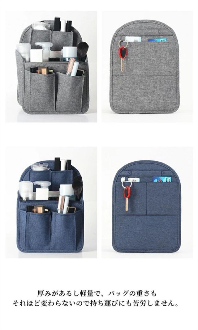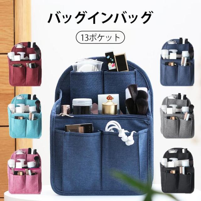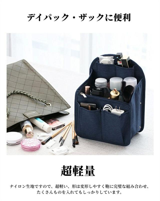 バッグインバッグ リュック 13ポケット 収納整理 miniバッグ 小さめ 自立 軽量 ナイロン インナーバッグ インナーポケット 収納力 仕分け デイパック ザックに便利 メンズ レディース 折り畳み 撥水加工 bag in bag