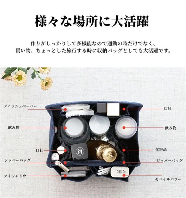 【様々な場所に大活躍】 作りがしっかりして多機能なので通勤の時だけでなく、買い物、ちょっとした旅行する時に収納バッグとしても大活躍です。携帯、手帳や化粧品など、すべての小物がきちんと直立して固定され、スムーズに取り出せます。