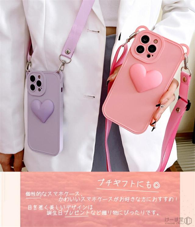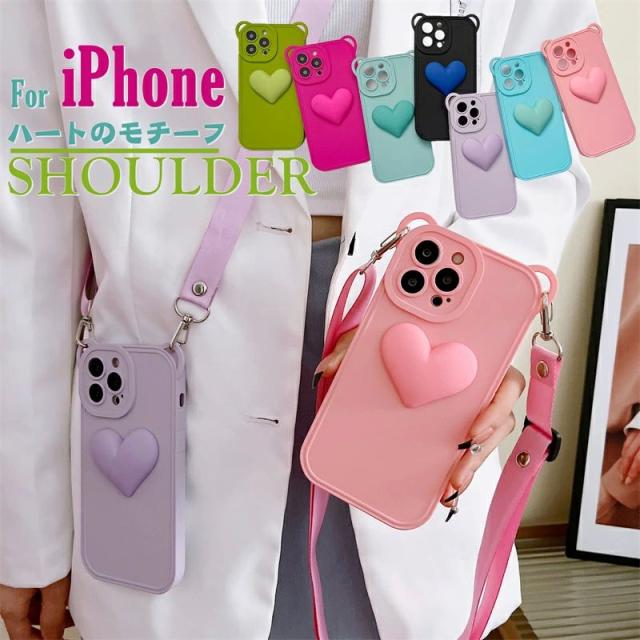 アイフォンケース ショルダー iPhone 13 12 14 11 Pro XS Max ショルダーケース ショルダー タイプ スマホケース おしゃれ かわいい iPhone14 iPhone12 携帯ケース スマホショルダー アイフォン 14 12 13 肩掛け 斜めかけ 耐衝撃 TP ハート スマホ ショルダーストラップ