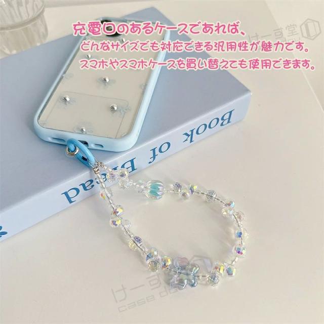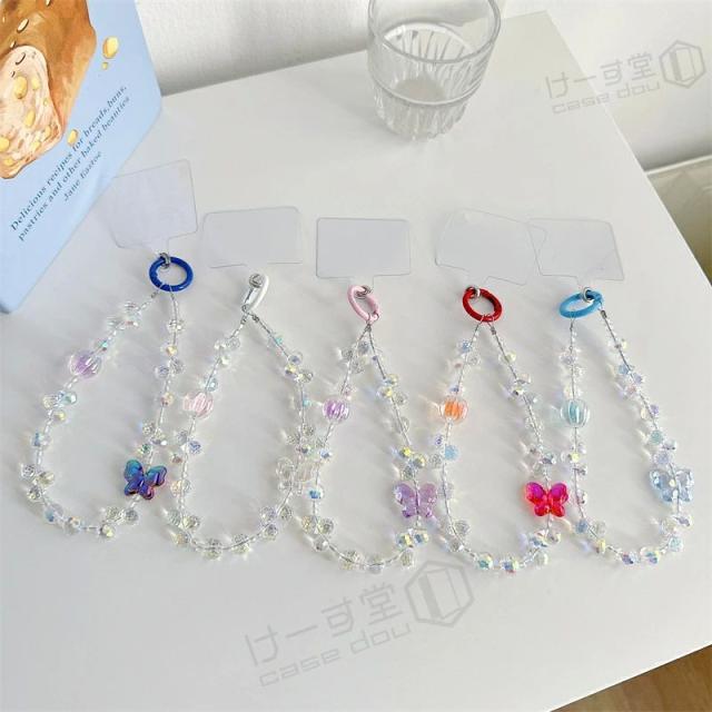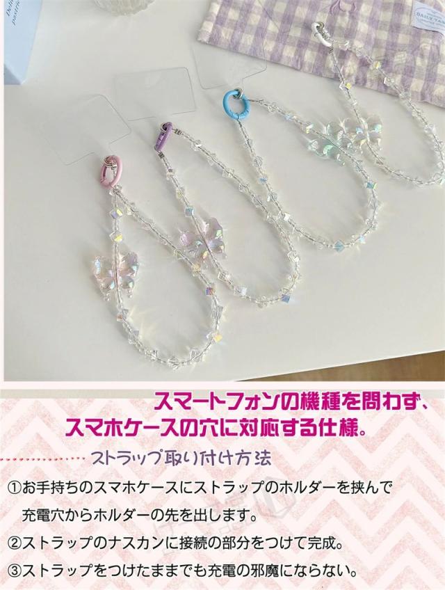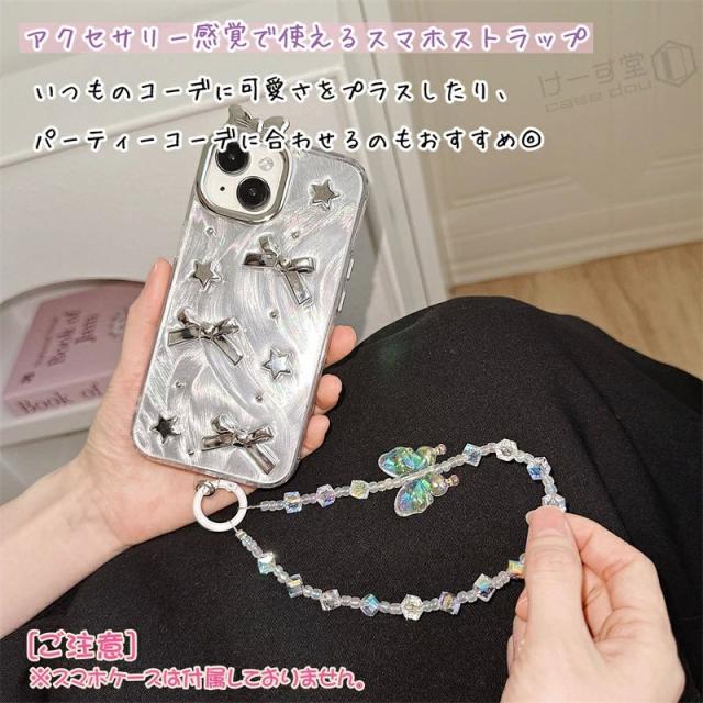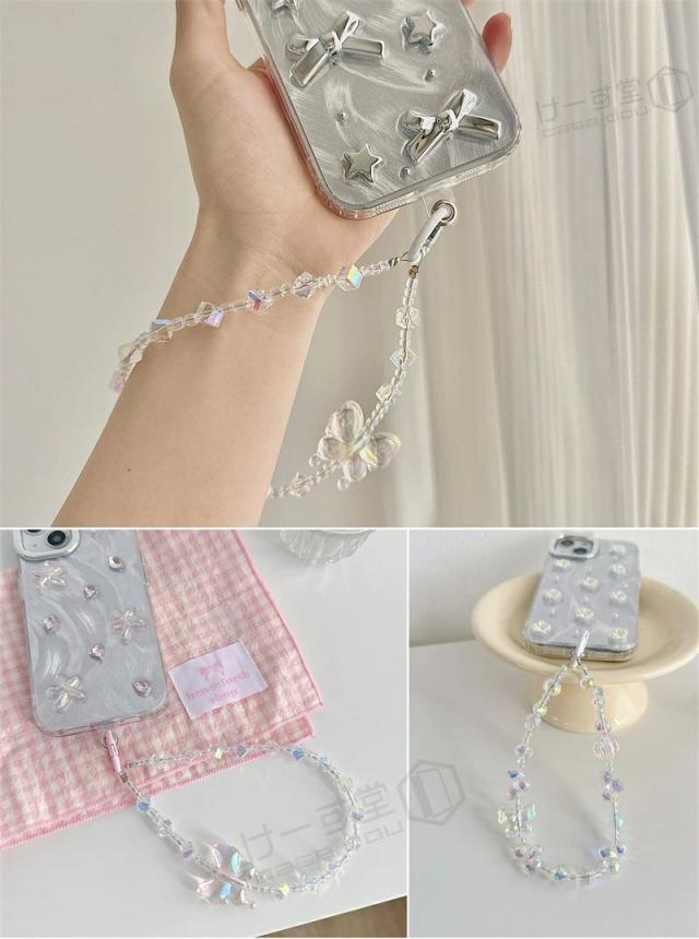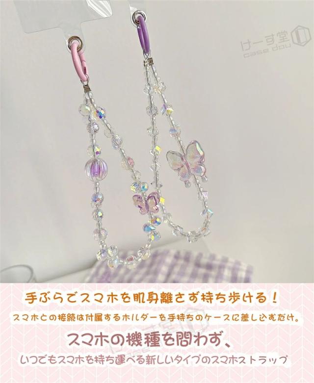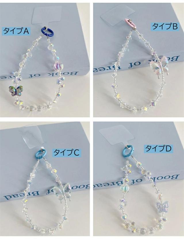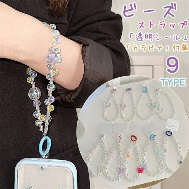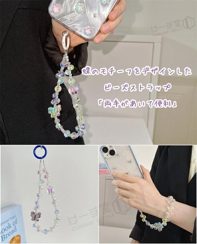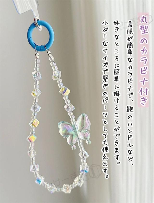ハンドストラップ カラビナ付き スマホストラップ レディース ハンド ストラップ ストラップシート 携帯ストラップ 蝶 パール ハンドメイド 手作り 手首 おしゃれ かわいい アクリル ビーズ パーツ ビーズストラップ 推し活 個性的 韓国 高校生 女子高生 おすすめ 可愛い