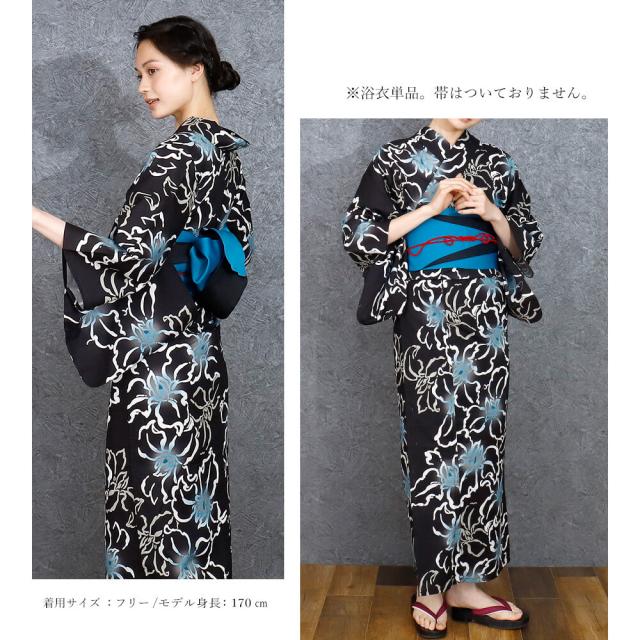 浴衣 レディース 女性浴衣 単品 浴衣単品 大きいサイズ モデルサイズ 高身長 ゆかた 大人 かっこいい 上品 個性的 黒 紺