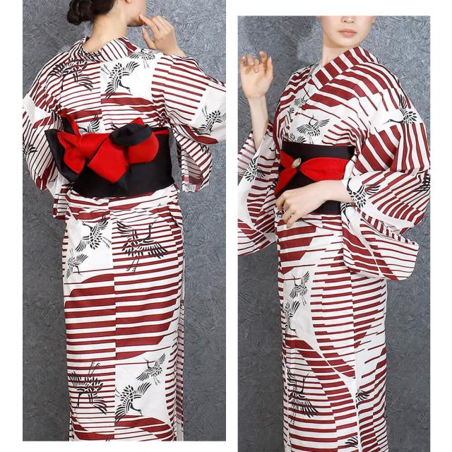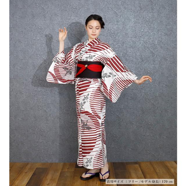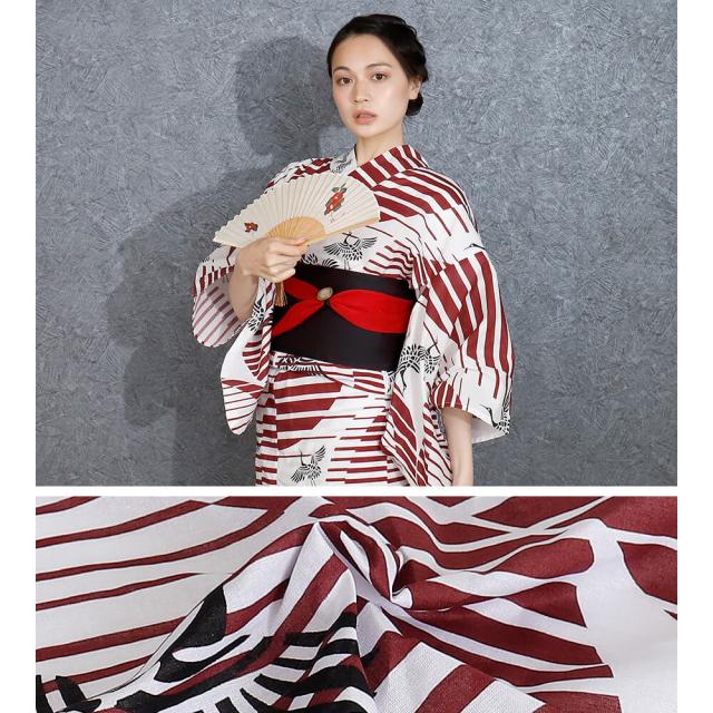 浴衣 レディース 女性浴衣 単品 浴衣単品 大きいサイズ モデルサイズ 高身長 ゆかた 大人 かっこいい 上品 個性的 鶴 赤