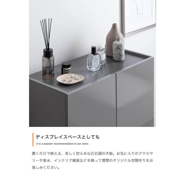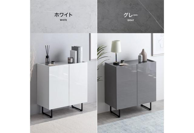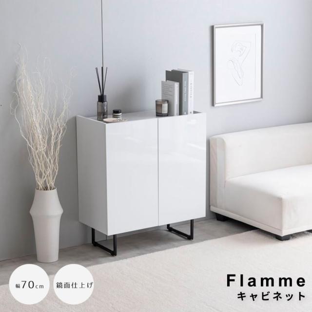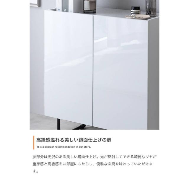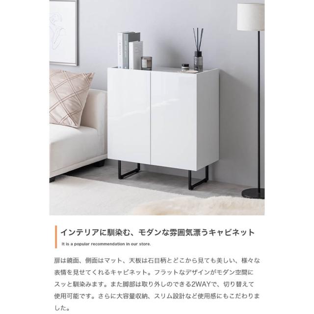 キャビネット 幅70cmタイプ サイドボード 扉収納 スリム 鏡面 石目調 リビング モダン 白 台所 キッチン 玄関 本棚