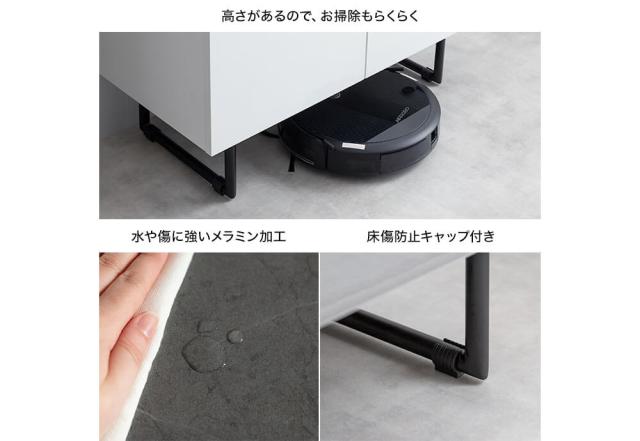 本体はパーティクルボード、天板はメラミンシート貼りで、耐久性にも優れています。