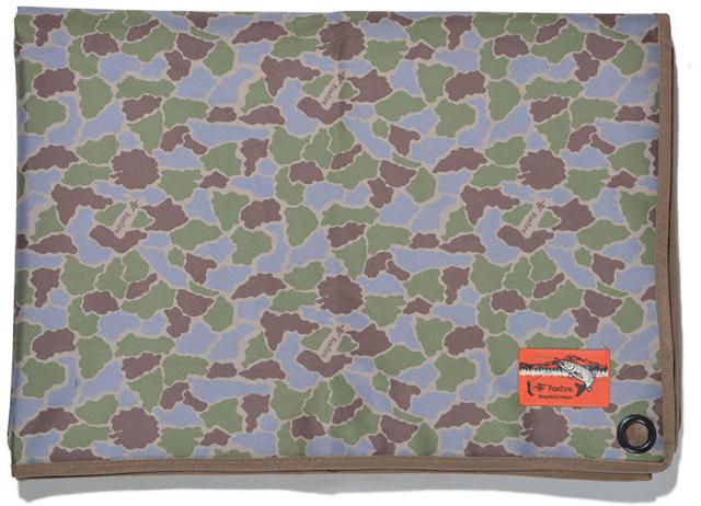 FOXFIRE 伝統の「 FISH EYE CAMO 」を採用したシリーズです。 魚から見てステルス性が発揮される FOXFIRE 独自のカモフラージュ柄。ミリタリーとは一味違うパターンがキャンプサイトを彩ります。裏面に防水加工が施されたグランドシートです。シンプルな無地デザイン。角に施されたハトメにペグ ( 杭 ) を打ち、風によるめくれ上がりを防ぐことができます。機能性に優れた、アウトドアシーンで大活躍間違いなしのアイテムです。 1 〜 2 人程で使える S サイズから、 5 〜 6 人程で使える L サイズまでの 3 サイズ展開です。お手入れにつきましては、洗濯機での丸洗いはできず、水洗いが可能です。ブラシ等をお使いいただくと良いかと思います。